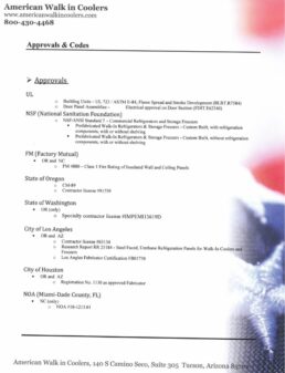 Customers ordering this unit for installation in California, Florida, Oregon, WashingtonĀ including many other states may require engineering or wet stamped documents to meet the planning departments code requirements. Examples are Seismic, Wind Speed, Hurricane Zones, and Snow Load. Please contact American Walk-in Coolers for more information about your specific location and if there are any known requirements 1-800-430-4468.